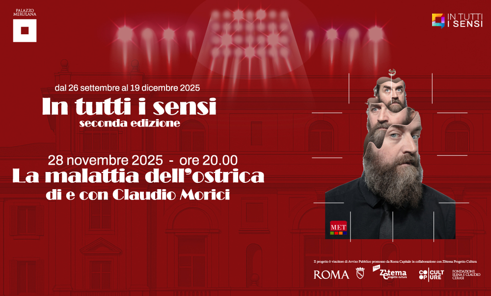 Palazzo Merulana è lieto di ospitare “La malattia dell’ostrica”, di e con Claudio Morici, nono appuntamento della rassegna IN TUTTI I SENSI – II edizione.