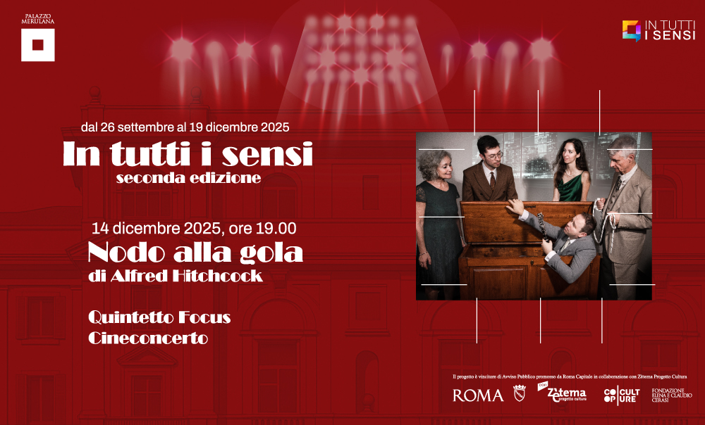 Palazzo Merulana è lieto di ospitare il cineconcerto del Quintetto Focus, “Nodo alla gola”, undicesimo appuntamento della rassegna IN TUTTI I SENSI – II edizione.