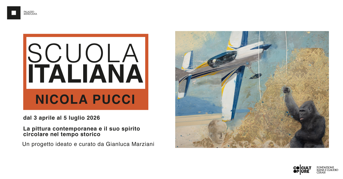 Palazzo Merulana, nato dalla sinergia tra Fondazione Elena e Claudio Cerasi e CoopCulture, ospita il progetto Scuola Italiana. La pittura contemporanea e il suo spirito circolare nel tempo storico, ideato e curato da Gianluca Marziani, la cui prima mostra sarà Nicola Pucci. Nuovo Realismo Magico.